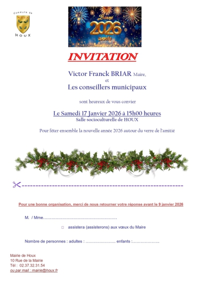 Les habitants de la commune sont conviés à la cérémonie des voeux du maire qui aura lieu le samedi 17 janvier à la salle socioculturelle.
