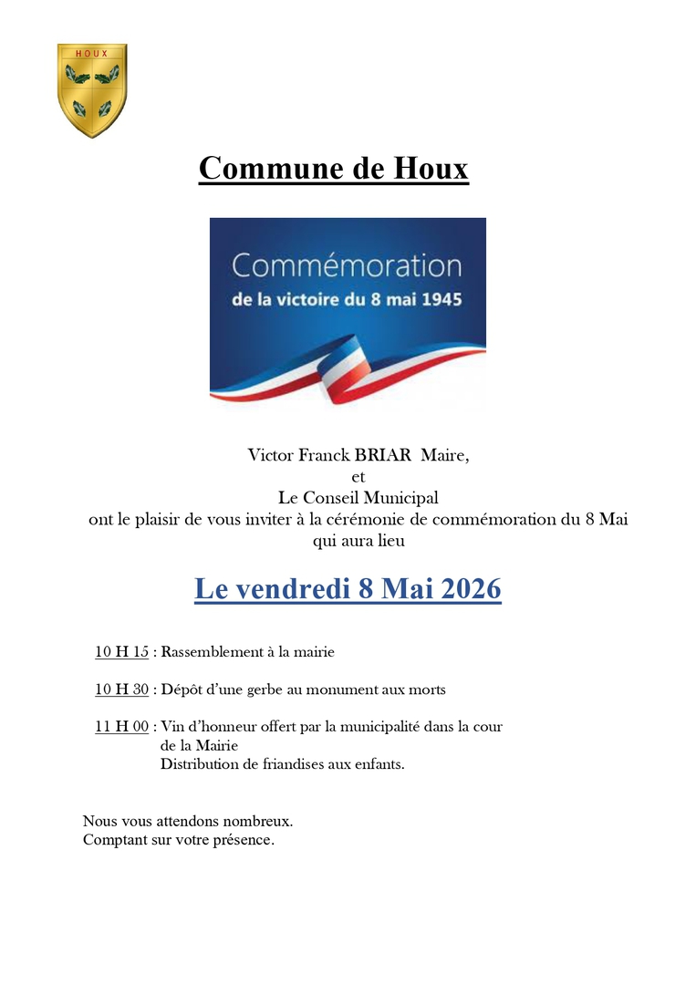 Retrouvez l'actualité de la commune sur la page facebook "Mairie de Houx" !